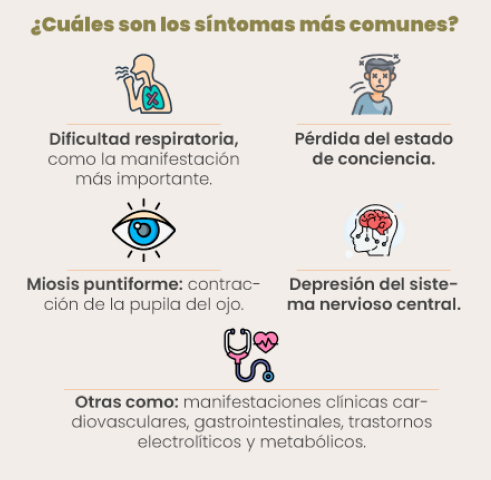 - Miosis (contracción de las pupilas)